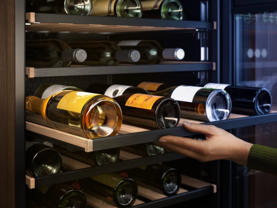 Per proteggere la qualità del tuo vino le nostre cantine creano un ambiente privo di vibrazioni grazie al compressore esterno, ammortizzatori in gomma e ripiani in legno.