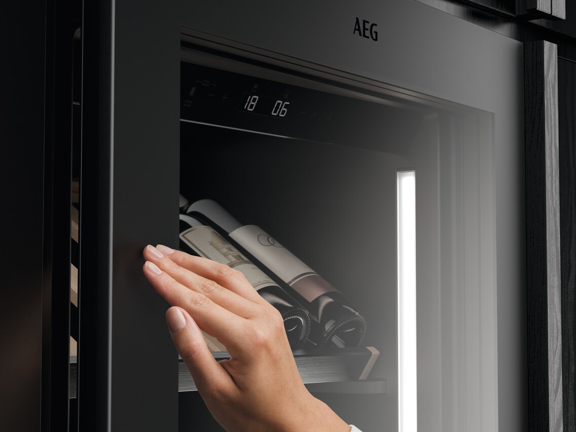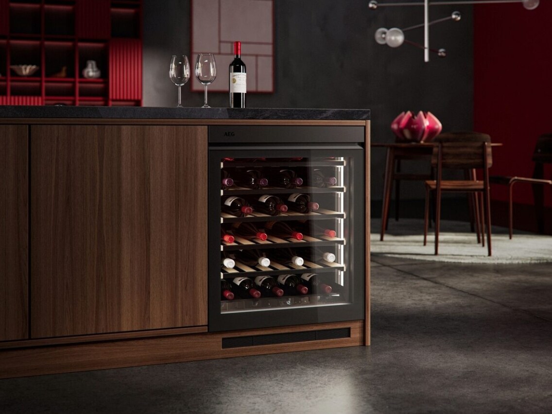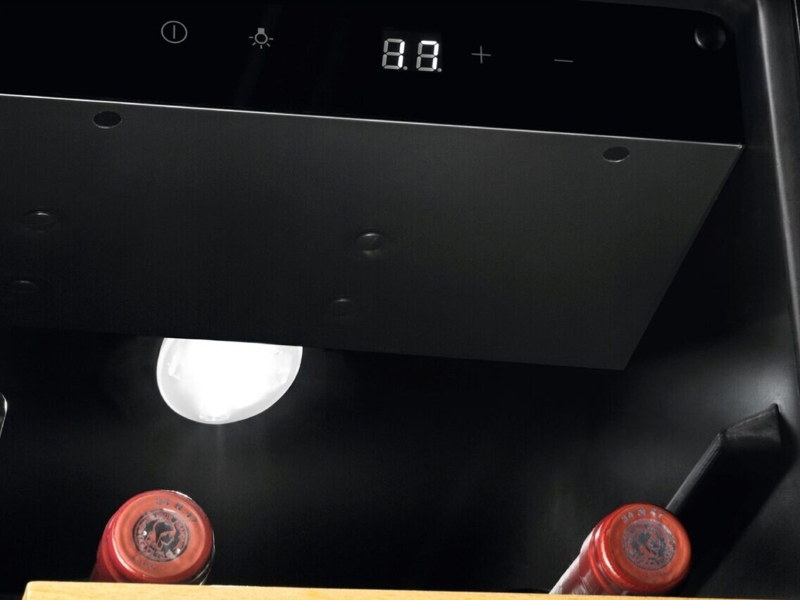 Le nostre cantine vino proteggono le bottiglie dai raggi UV grazie alle porte in vetro colorate, gli interni oscurati e le luci a LED.