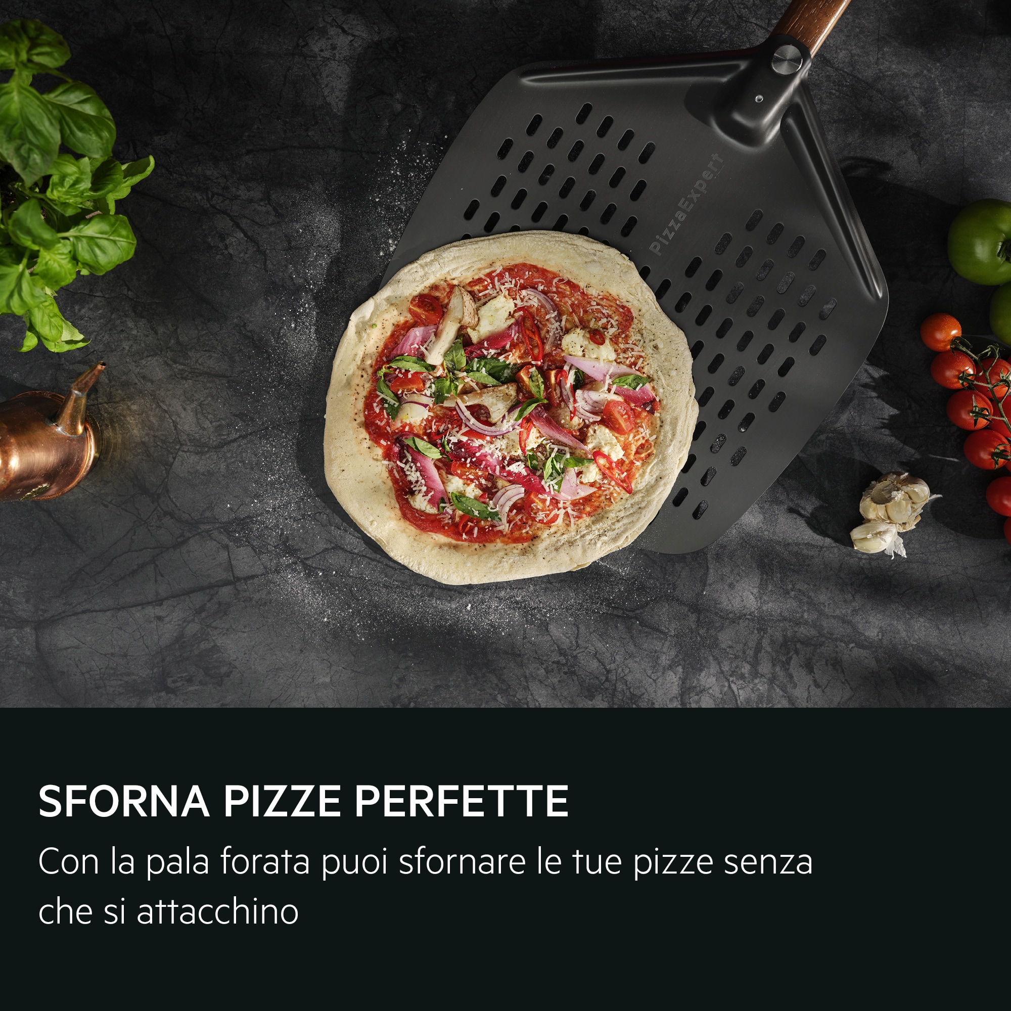 Il kit PizzaExpert: due accessori che garantiscono risultati costanti. Una teglia in ghisa progettata per resistere alla cottura a 340°C. Inoltre, una pala per pizza forata pensata per ridurre al minimo l’aderenza e rendere più semplice la gestione delle pizze.