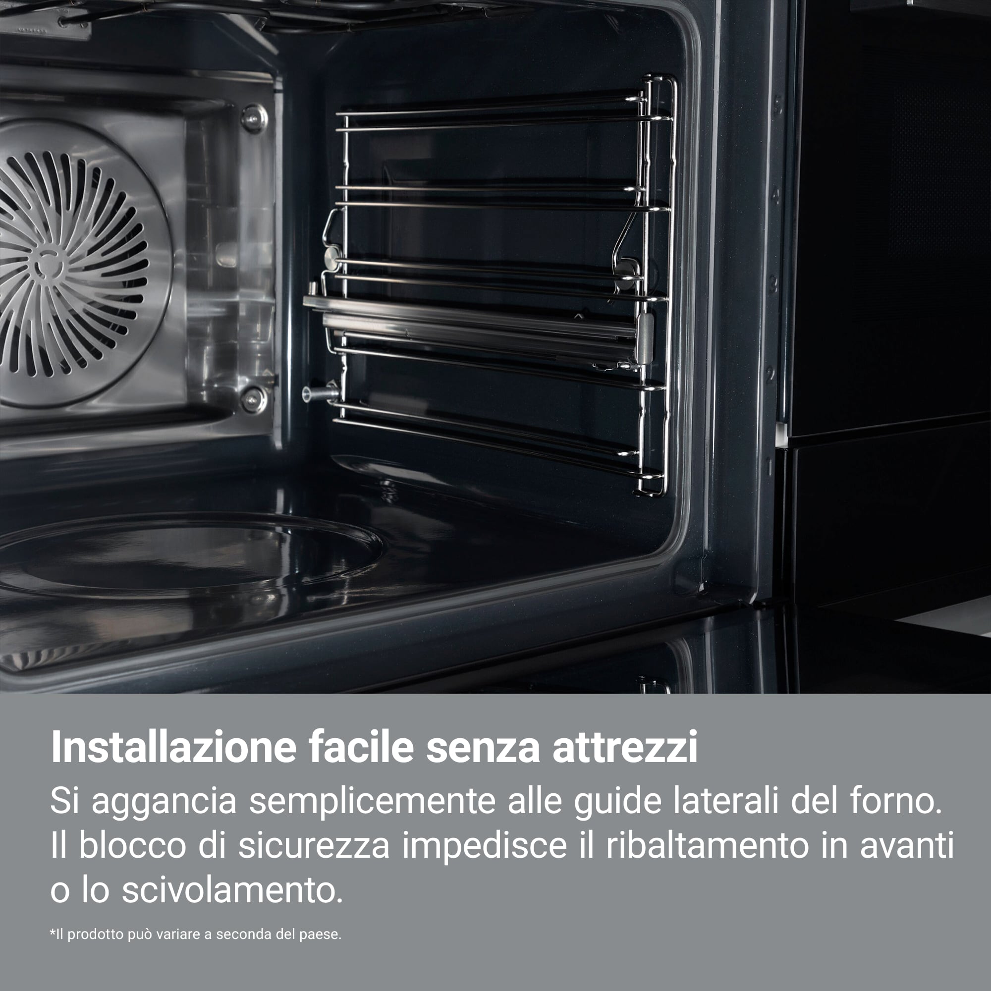 Guida telescopica per 1 livello ad estensione parziale per forni dotati di griglie laterali all'interno della cavità (Esclusi ROB2200AOX-EOB2200DOX-EOB2201DOX-ROB2100AOK-ROB2100AOW-ROB2101AOW-ROB2200AON-ROB2201AON-ROB2211AOX).Esclusi i forni 100% vapore.
