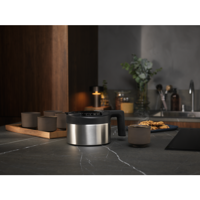 Scegli tra un'ampia gamma di bevande calde con la Macchina del Caffè integrata AEG. Realizza un caffè come quello del bar: da un intenso espresso fino a un cappuccino schiumoso, oltre a un'ampia selezione di bevande calde. Utilizza la rotellina dei comandi e il display a colori estremamente chiaro.