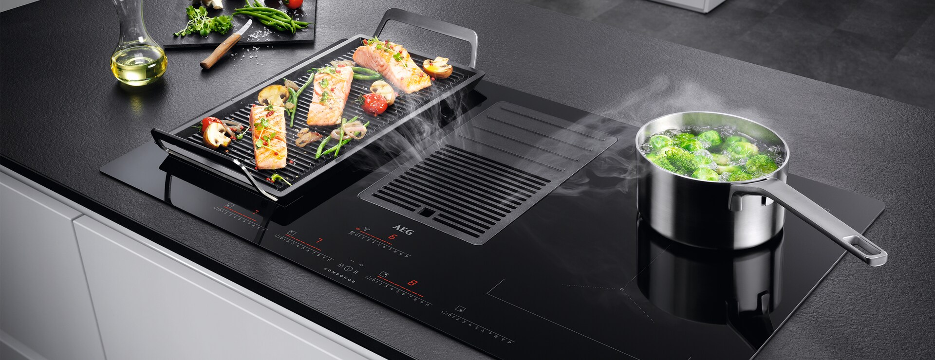 I piani con cappa integrata AEG sono la soluzione ideale per chi desidera un ambiente di cucina definito da linee pulite, performance elevate e una libertà progettuale senza precedenti. L’innovativa soluzione 2-in-1 unisce in un unico elettrodomestico la precisione della tecnologia a induzione e la potenza di un sistema di aspirazione di ultima generazione, in modo da eliminare la necessità di una cappa tradizionale e trasformare il concetto stesso di zona cottura. È la scelta perfetta per chi cerca l'eccellenza e non accetta compromessi tra funzionalità e design di alto livello.