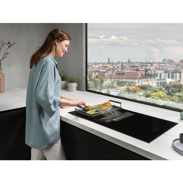 Progetta la tua cucina con tutta la creatività che vuoi. Questo duo combina un piano di cottura a induzione con un potente sistema aspirante integrato, così non dovrai preoccuparti di scegliere una cappa separata per il tuo piano cottura. Da oggi puoi progettare la tua cucina con la libertà creativa di cui hai bisogno.