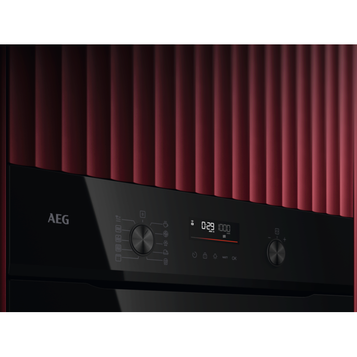 Microonde compatto integrato della Serie 5000 Microonde con Display LED Explore, 44 litri e 45 cm di altezza, microonde da 1900 W e Grill da 1700 W, 9 funzioni, comandi a scomparsa, grill grill, porta a 4 vetri, vetro nero con bordo smussato e maniglia anodizzata nera