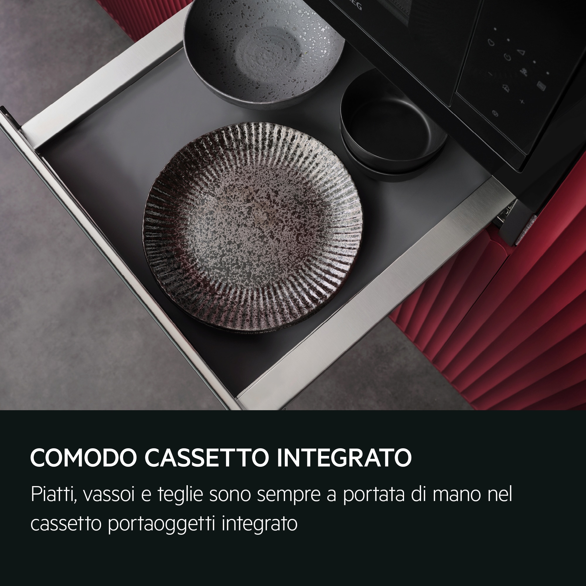 Cassetto portaoggetti incorporato: perfetto per piatti, vassoi e padelle