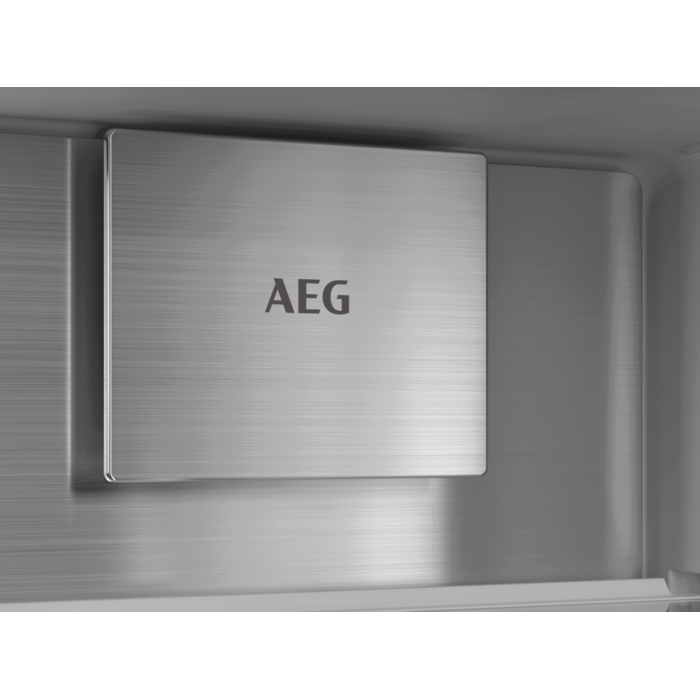 I canali d'aria nella parete posteriore del frigocongelatore Glass Cooling 360° fanno circolare l'aria fredda per garantire una temperatura sempre uniforme. Il pannello in vetro aumenta la luminosità interna e conferisce un tocco di eleganza.