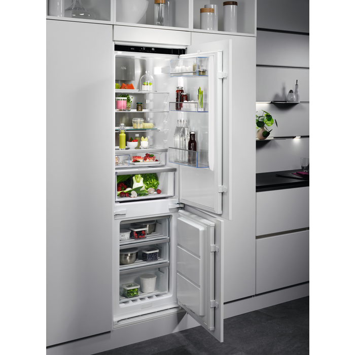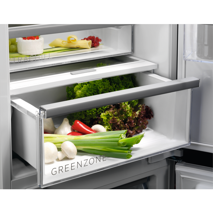 Il frigocongelatore Cooling 360° Serie 8000 protegge il cibo grazie a una migliore distribuzione della temperatura del 40% su ogni ripiano. I diversi canali per l’aria consentono un raffreddamento uniforme e l’acciaio inox conferisce un aspetto elegante e di alto livello per la tua cucina.