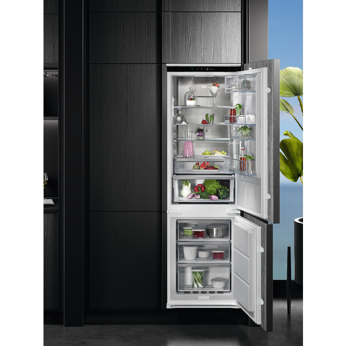 Il frigocongelatore Cooling 360° serie 8000 è dotato di più canali d'aria per garantire un raffreddamento costante. In questo modo si proteggono gli alimenti su ogni ripiano e si riduce lo spreco di cibo del 28%*. L'acciaio inox dona alla cucina un aspetto elegante e raffinato.