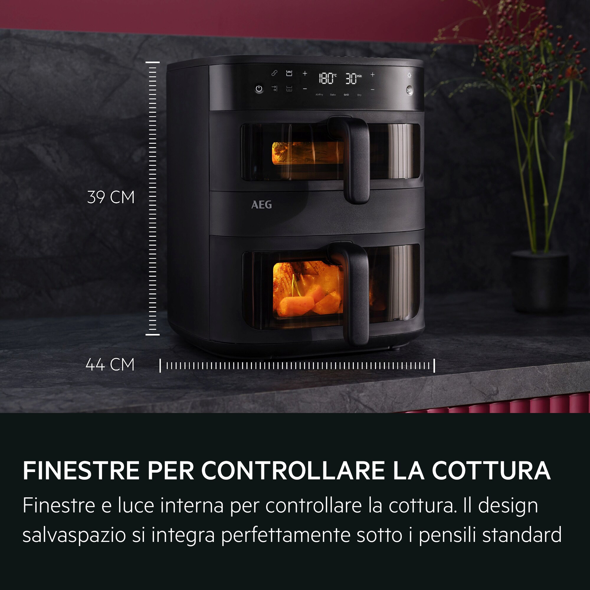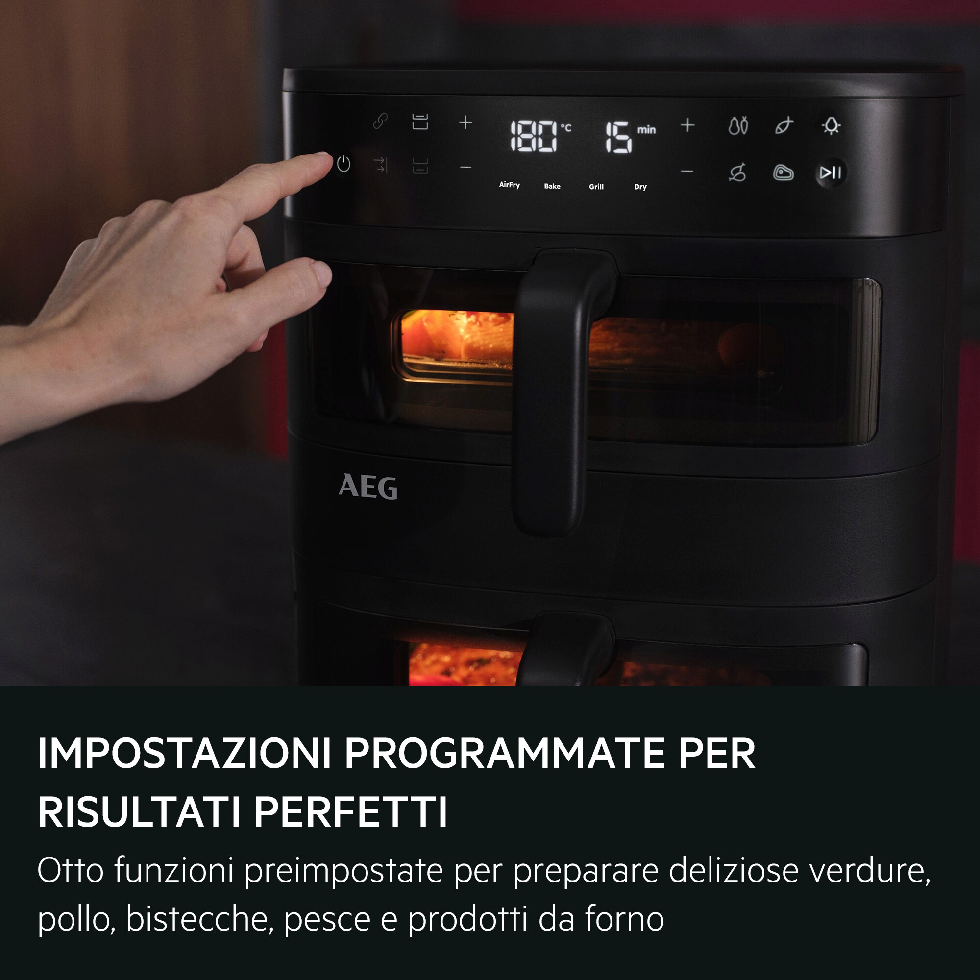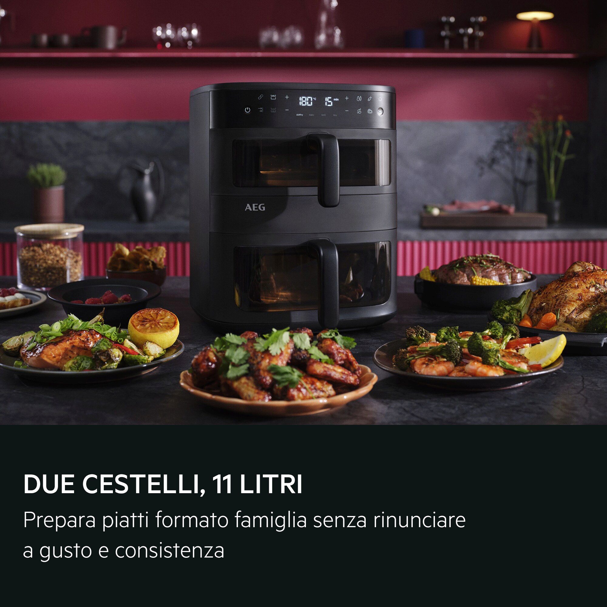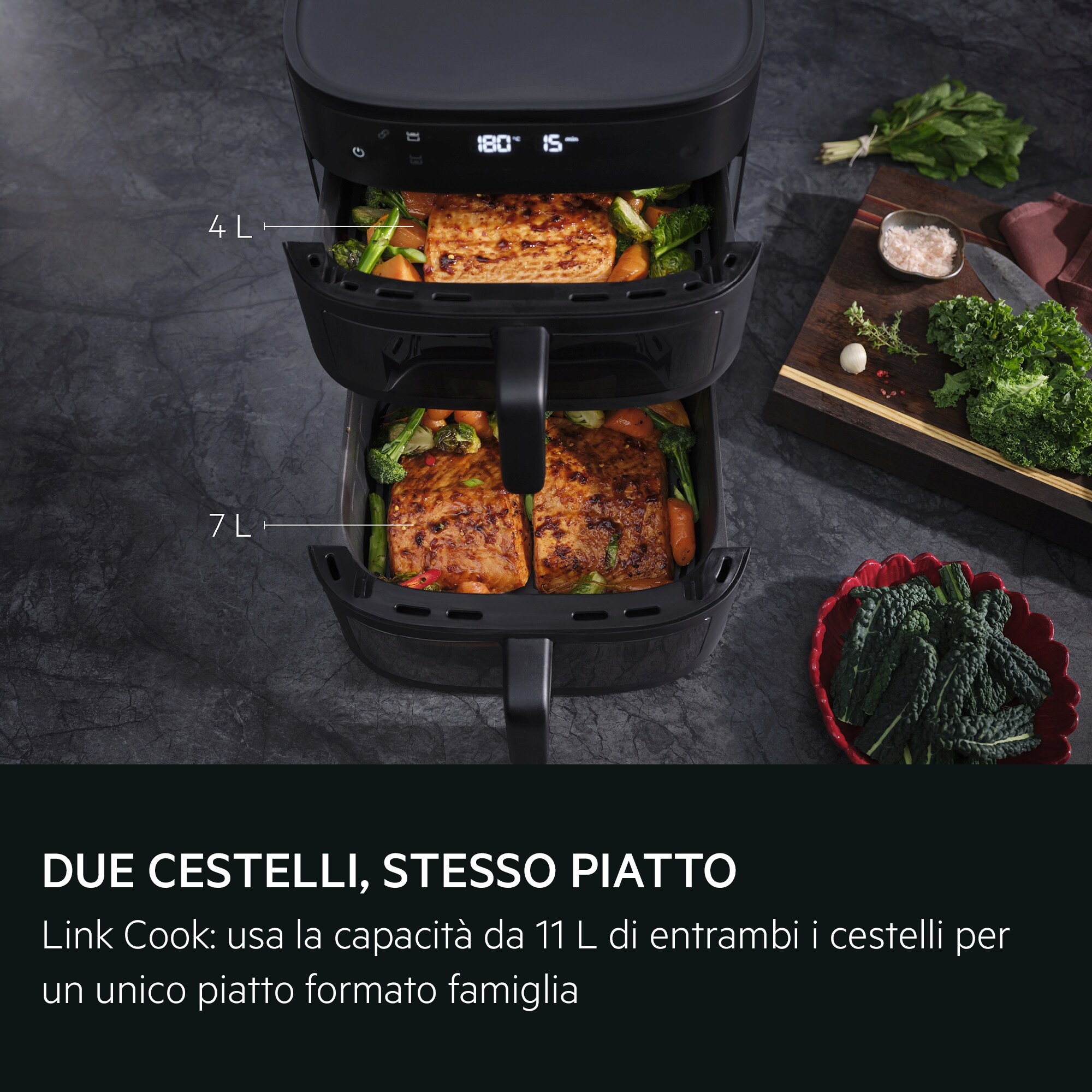 **Basato su test interni che confrontano la temperatura interna di salsicce cotte in un unico strato rispetto a due strati, utilizzando il modello EAF5B. I risultati effettivi possono variare in base al tipo di alimento, alla quantità e al metodo di cottura.