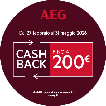 Dal 27 febbraio al 31 maggio 2026 acquistando una delle lavatrici, asciugatrici o lavasciuga AEG in promozione ricevi fino a 200€ di rimborso direttamente sul tuo conto.