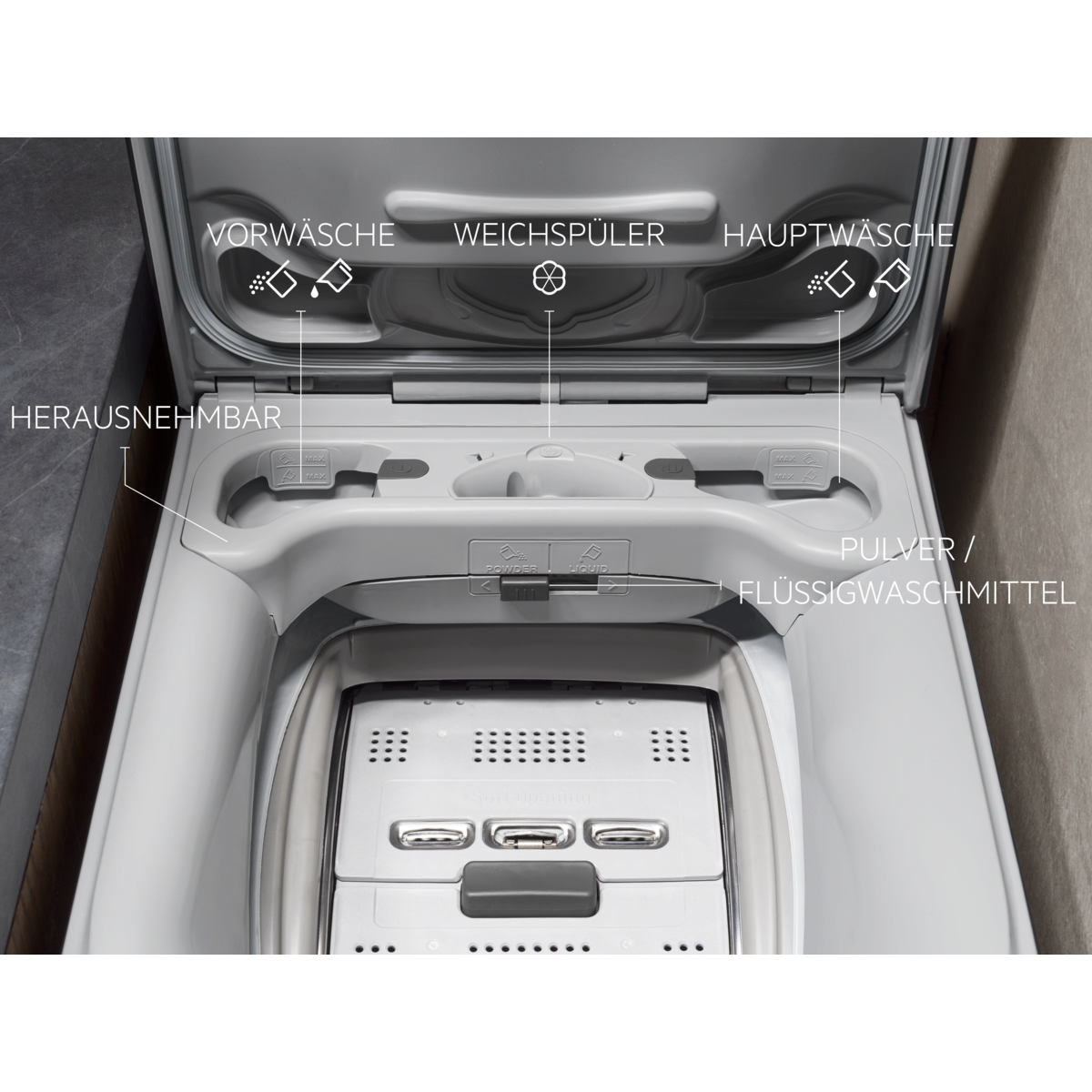 FlexiDose Plus. Facile da usare e pulire. Per detersivo in polvere e liquido.
