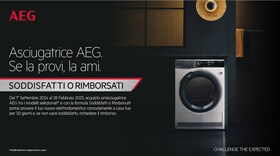 Dal 1° settembre 2024 al 28 febbraio 2025, acquista un'asciugatrice AEG tra i modelli selezionati e con la formula Soddisfatti o Rimborsati potrai provare il tuo nuovo elettrodomestico comodamente a casa tua per 30 giorni e, se non sarai soddisfatto, richiedere il rimborso.