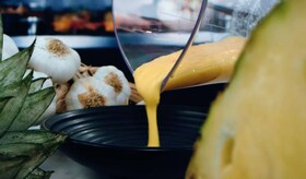 - Unisci Ananas, chili, olio di sesamo, sidro di mele, lime, aglio sale e pepe nel blender e mischia assieme.