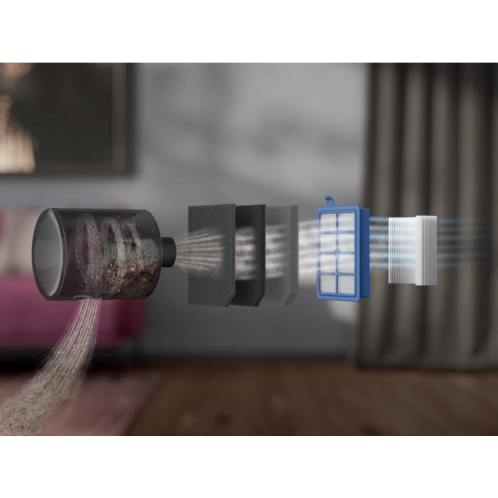 *Test esterni effettuati sulla filtrazione di particelle di polvere da 0,3 a 10 μm secondo lo standard IEC62885-2:2021, 5.14, utilizzando sabbia/polvere standard.
