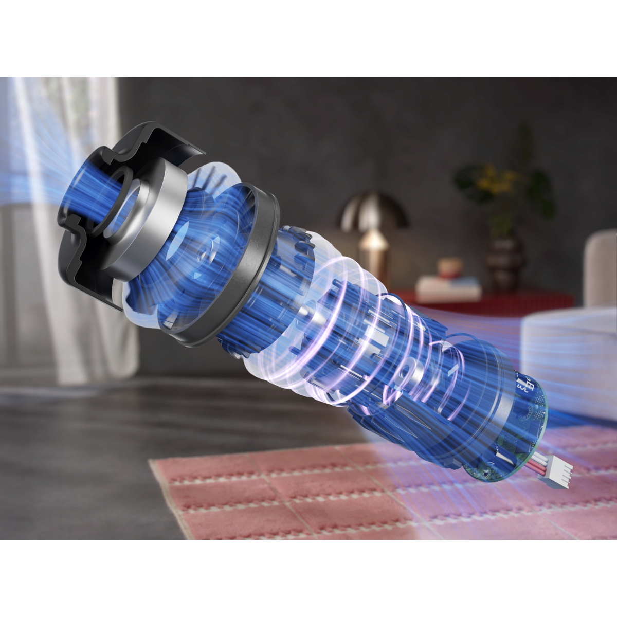 "Basato su test secondo lo standard IEC 62885-2, considerando il risultato medio di raccolta della polvere di 5.2, 5.3 (in entrambe le direzioni) su pavimenti duri. I risultati si basano sul confronto con i sei aspirapolvere senza filo più venduti con prezzo superiore a 490 EUR in quattro Paesi europei (ottobre 2024 – settembre 2025).