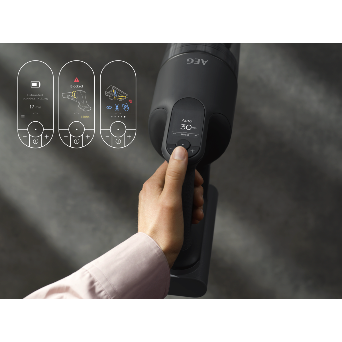 "Confronto con il numero più alto di prodotti testati tra gli aspirapolvere senza fili venduti in 4 Paesi europei nella fascia di prezzo 400–700 EUR (2025). La capacità di raccolta della polvere è testata secondo gli standard IEC 62885-4 e IEC 62885-2, 2021, con un risultato medio di raccolta della polvere di 5.2, 5.3 (in entrambe le direzioni) su pavimenti duri. Autonomia misurata in modalità ad alta velocità."